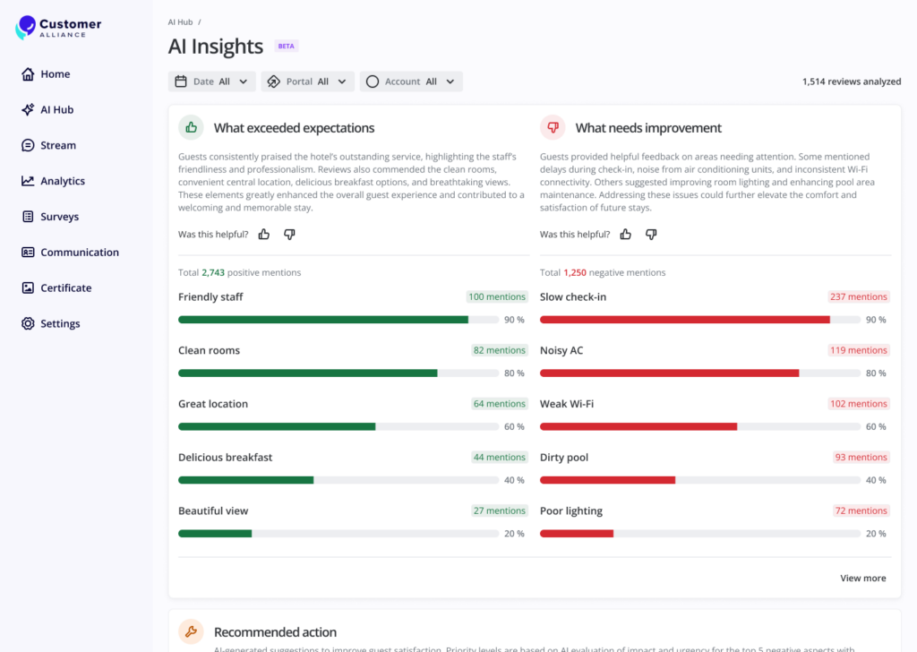 Customer Alliance is built to do exactly that, bringing together the capabilities needed to understand guest feedback at scale and act on it consistently.